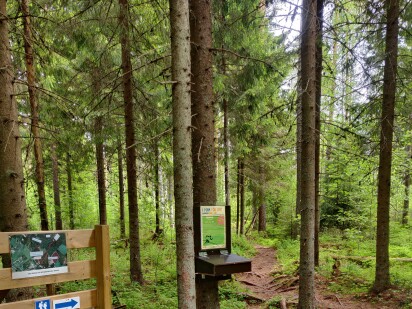 Luontopolku on jaettu kolmeen osaan, joten voit valita eripituisia reittejä: 1,8 km, 3,1 km, 3,4 km ja 4,5 km. Luontopolun kartta (pdf)